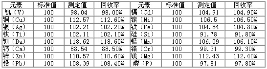 高频产生器:27.12MHz,中间通道为0.6mm的石英炬管,高频功率1100W,反射功率约50W,等离子气流量15L/min,帮助气流量1.0L/min,载气流量0.4L/min,氧气流速30ml/min,雾化室温度-10℃,爬动泵转速3ml/min。