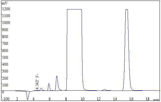 取5种差别色彩的涂层试样,各称取0.2g(切确至0.0001g),接纳氧弹熄灭后冷却定容,经0.22μm的水系滤膜过滤后上机获得样品谱图,以下图3所示,5种涂层试样的测定成果均低于体例检出限,同时对5种试样停止了加标处置,加标收受接管率在97.2%~104.2%之间。测试数据详见表2。