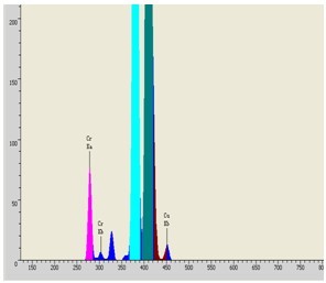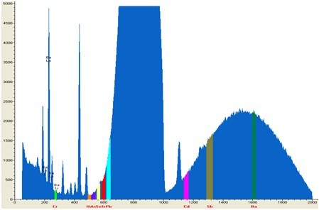 调控EDX 9000C自测自测仪器对客车零件安全玻璃合格品扼杀自测自测,自测自测时刻1秒,其自测自测谱图和统计数据接下来图: